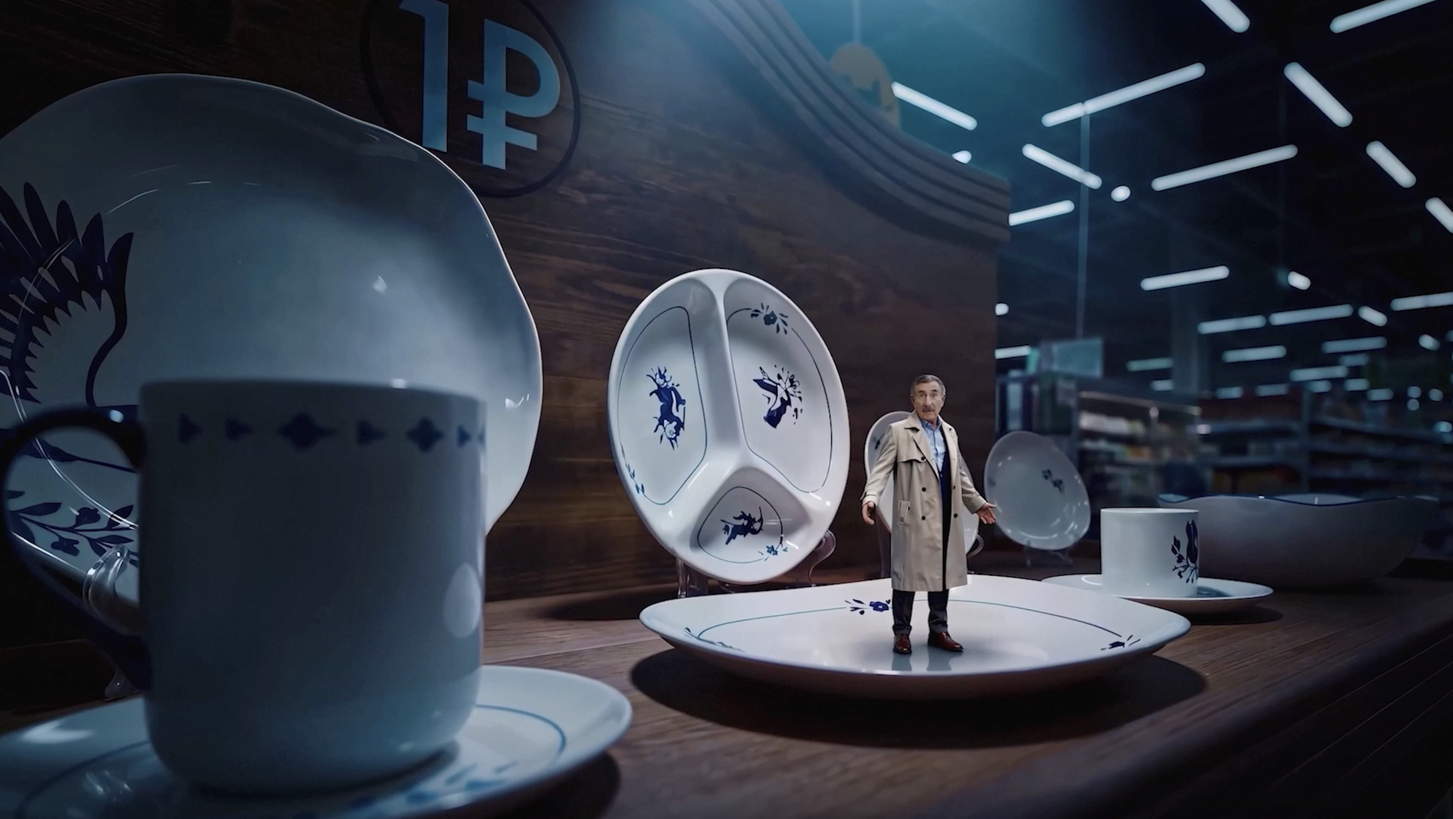 Но вот со сценами со звездой внутри сервиза, нам потребовалась помощь, элегантный трюк, который мы придумали нужно было быстро сделать, поэтому ЭйАй - этот ЭйАй не тот ЭйАй, который ради ЭйАй, это решение помогло быстро и качественно собрать Фабрик и Дитейлс в визуальный аттракцион, что бы получился Фарфорабл.
